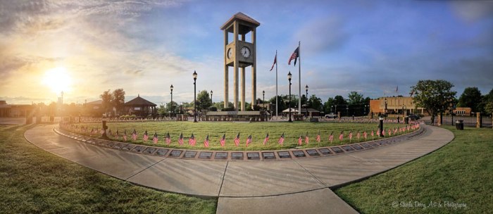 We used to live in Greenwood, Arkansas, a community of about 9,700 people. In the center of the ‘square’ is Greenwood Memorial Park where lots of events are held each year. On Veterans Day, U.S. Flags are placed behind the stones of veterans who served us, bought by their families to honor them.