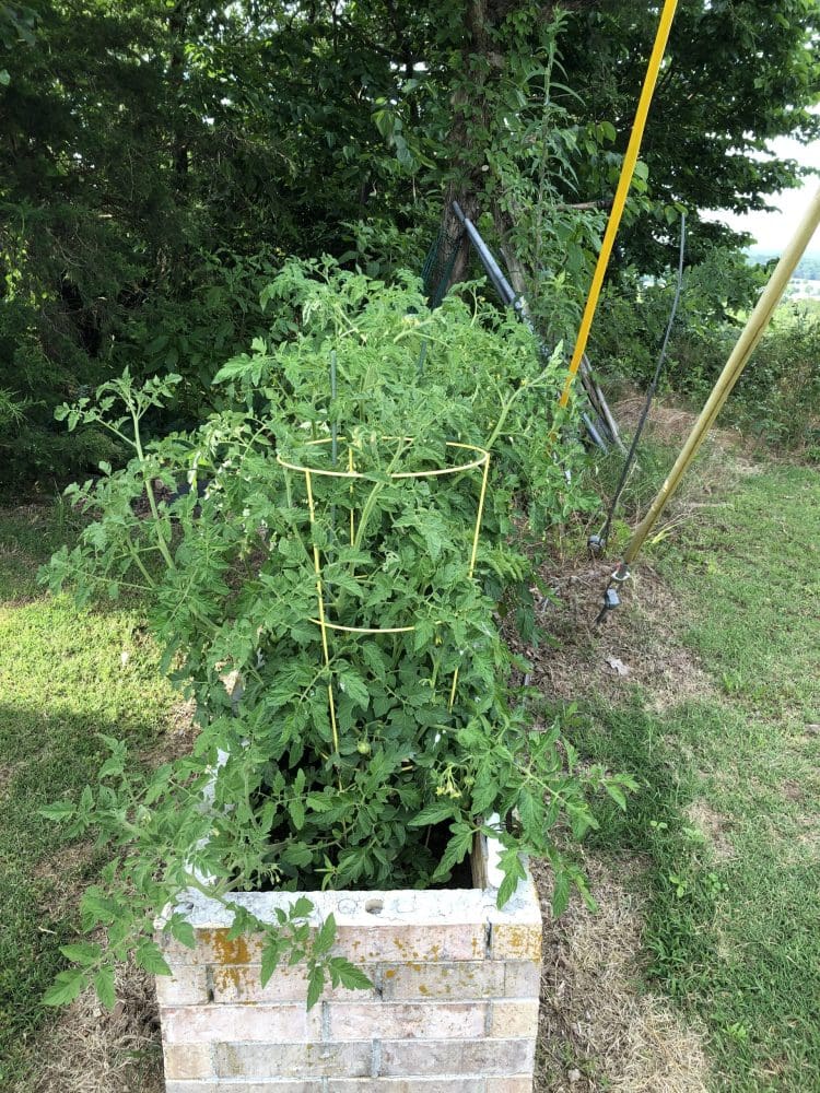 We have small green tomatoes and lots of blossoms on our tomato plants. We have two brick planters that we converted to square foot garden planters. I’m hopeful we’ll have lots of ripe tomatoes to slice and enjoy soon.
