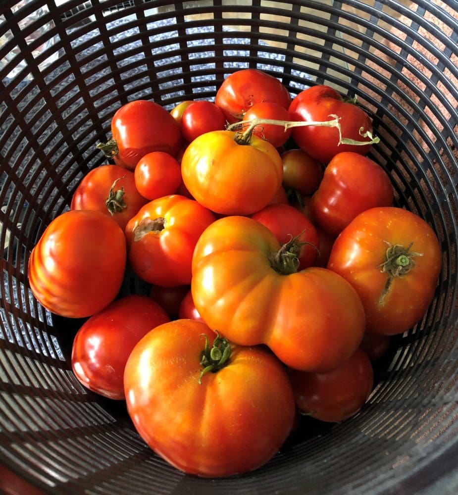 We had a good harvest yesterday. My spinach output is dwindling with the warmer weather and soon will be finished, so I’m getting as much as I can and freezing it so none will be wasted.