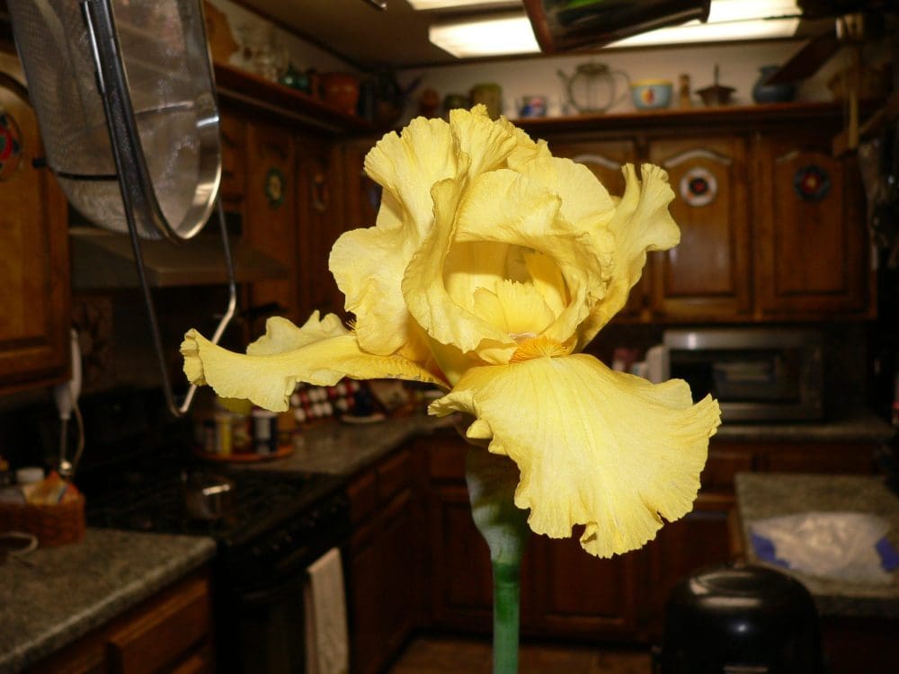 My husband brought in one of our fancier yellow iris yesterday. We’ll have several days to enjoy it, while the various buds open up and smile at us.
